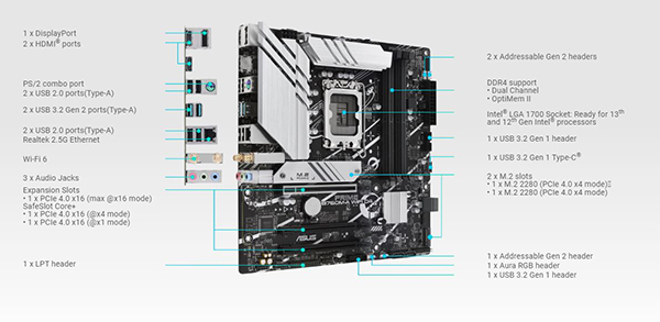 Cổng kết nối PRIME B760M-A WIFI D4-CSM được trang bị đẩy đủ các cổng kết nối để bạn dễ dàng lắp đặt.