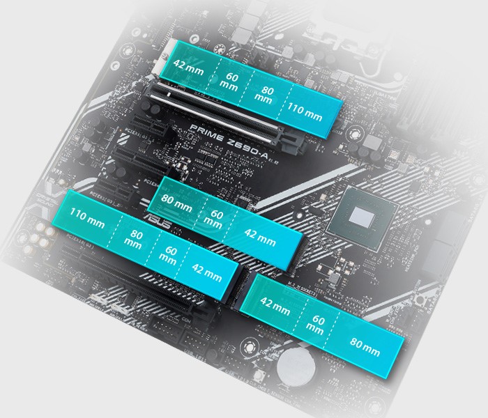 Hỗ trợ M.2 PCIe 4.0 ASUS PRIME Z690-A hỗ trợ đến 4 khe cắm M.2 PCIe 4.0 và cung cấp hỗ trợ NVMe SSD RAID để tăng hiệu suất đáng kinh ngạc. Tạo cấu hình RAID với thiết bị lưu trữ PCIe để tận hưởng tốc độ truyền dữ liệu nhanh nhất. |