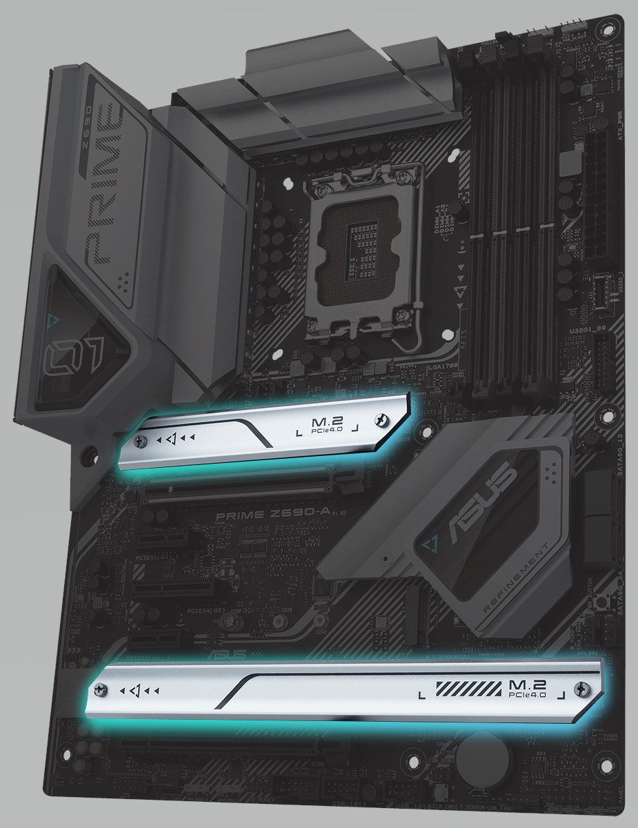 Tản nhiệt M.2 Bo mạch chủ ASUS PRIME Z690-A cung cấp cho bạn bộ tản nhiệt M.2 để chăm sóc khe cắm M.2 ở mức tối ưu nhất. |