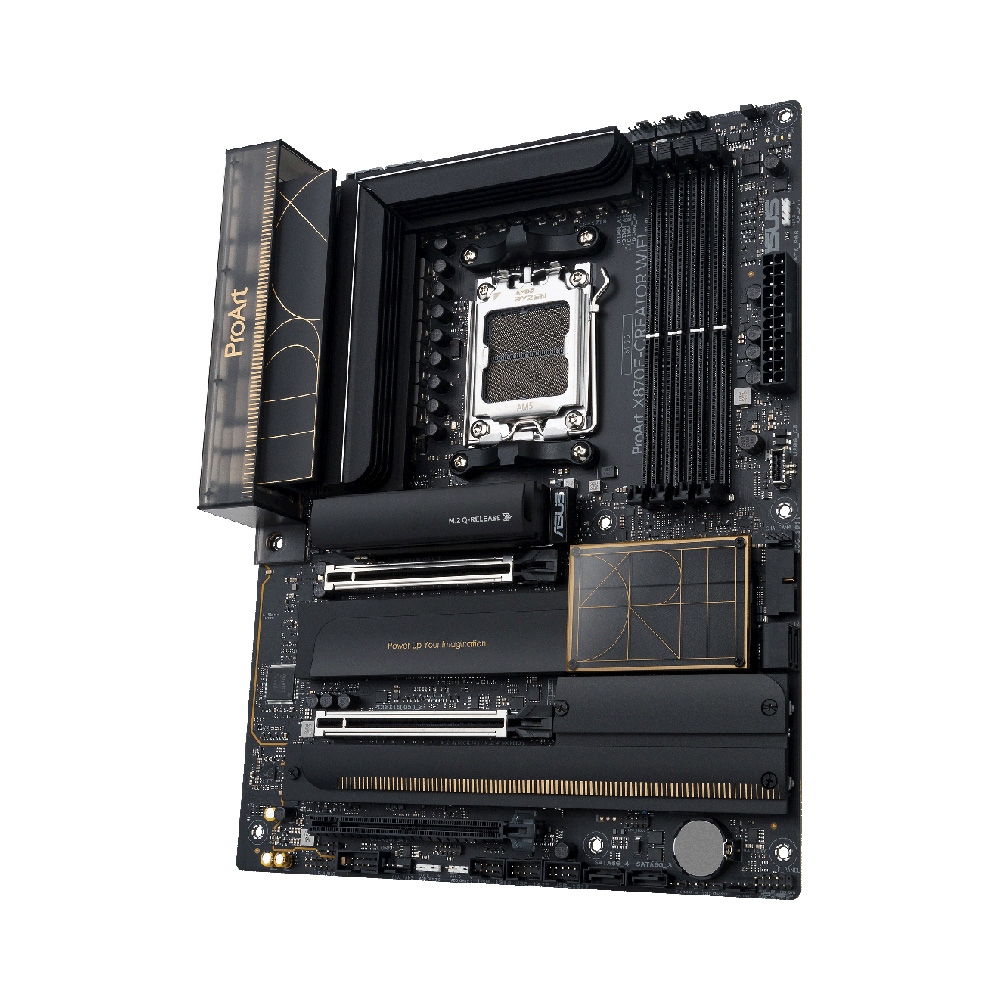 Với phong cách ProArt chuyên nghiệp, bo mạch chủ được trang bị VRM heatsink lớn, M.2 heatsink backplate, tản nhiệt VRM cao cấp, đảm bảo hệ thống luôn mát mẻ khi hoạt động liên tục. Công nghệ ASUS Q-Design như M.2 Q-Latch, PCIe Q-Release Slim, Q-Antenna giúp lắp đặt dễ dàng. Tích hợp phần mềm ProArt Creator Hub, CreationFirst tối ưu hiệu suất công việc, cùng gói Adobe Creative Cloud dùng thử miễn phí, giúp người dùng sáng tạo hiệu quả hơn.