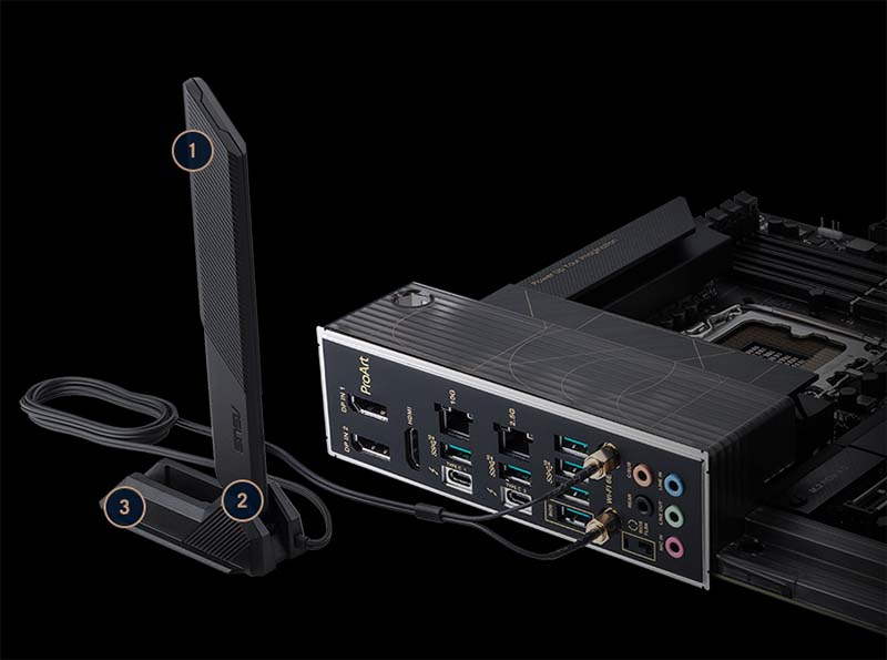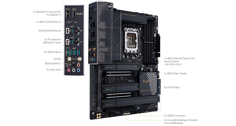 Cổng kết nối ProArt Z690-CREATOR WIFI được trang bị đẩy đủ các cổng kết nối để bạn dễ dàng lắp đặt.