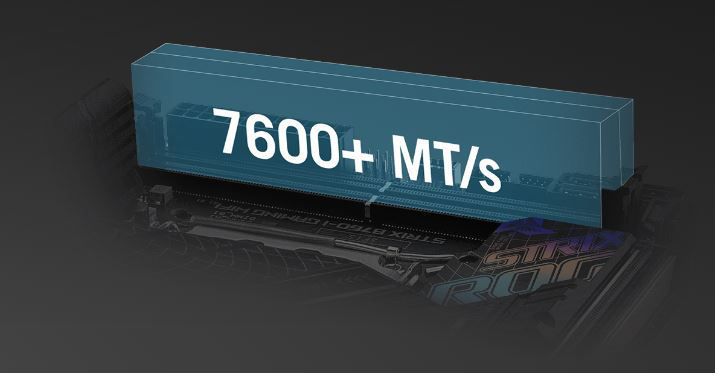 Bộ nhớ mạnh mẽ ROG STRIX B760-I GAMING WIFI hỗ trợ bộ nhớ DDR5 7600(O.C) lên đến 96 GB trên hai khe cắm, tăng cường độ ổn định và khả năng tương thích của bộ nhớ trong khi cung cấp cho bộ nhớ biên tần số cao hơn. |