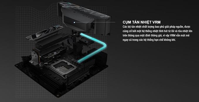 Khả năng tản nhiệt ROG STRIX Z790-I GAMING WIFI trang bị hai tản nhiệt VRM dày được kết nối bằng ống dẫn nhiệt và liên kết với tấm chắn I / O bằng kim loại, cung cấp diện tích bề mặt và khối lượng lớn để xử lý nhu cầu điện năng của bộ vi xử lý Intel thế hệ thứ 13 với hiệu suất cao. |