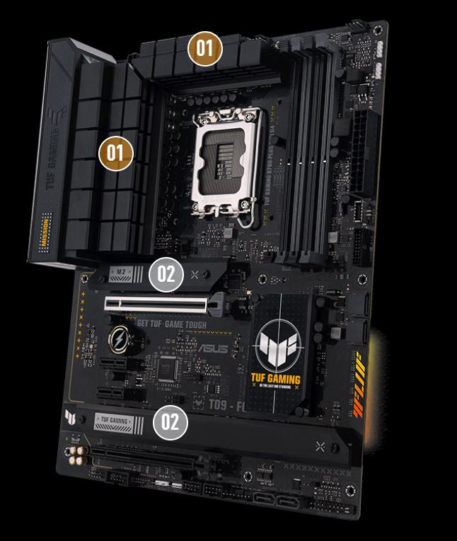 Khả năng làm mát TUF GAMING B760M-PLUS WIFI D4 trang bị bộ tản nhiệt khối lượng lớn với bề mặt rộng bao phủ các khu vực VRM và cuộn cảm giúp cải thiện khả năng tản nhiệt cùng tấm tản nhiệt chất lượng cao cho ba khe cắm M.2 để giữ cho SSD M.2 hoạt động ở nhiệt độ tối ưu, đảm bảo hiệu suất và độ tin cậy nhất quán |