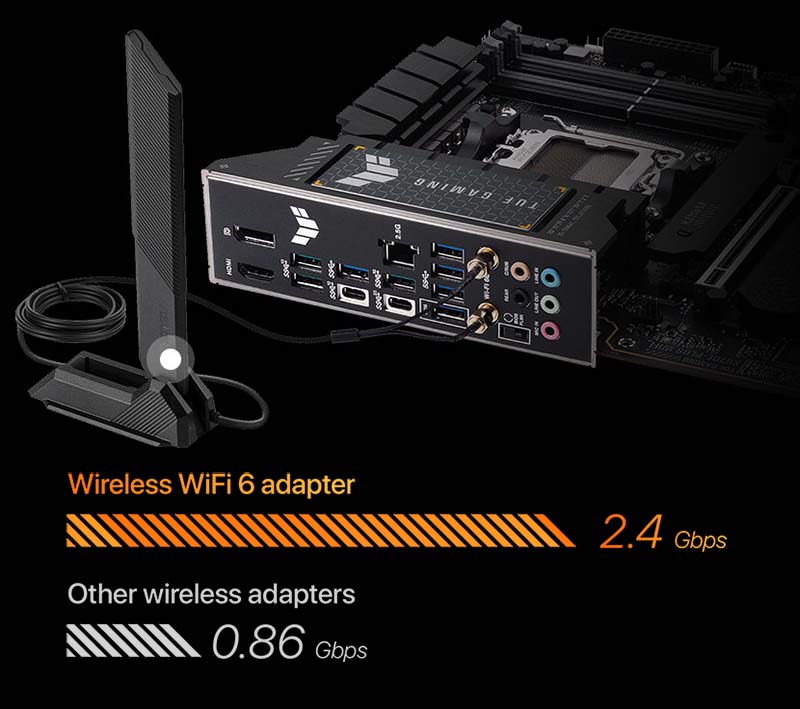 Hỗ trợ WiFi 6E Công nghệ WiFi 6E tích hợp trên TUF GAMING X670E-PLUS WIFI tận dụng phổ vô tuyến mới có sẵn ở băng tần 6 GHz. Nó cung cấp băng thông gấp ba lần băng tần 5 GHz và lên đến bảy băng tần 160 MHz để mang lại tốc độ mạng không dây cực nhanh và cải thiện dung lượng cũng như hiệu suất tốt hơn trong môi trường không dây dày đặc. |