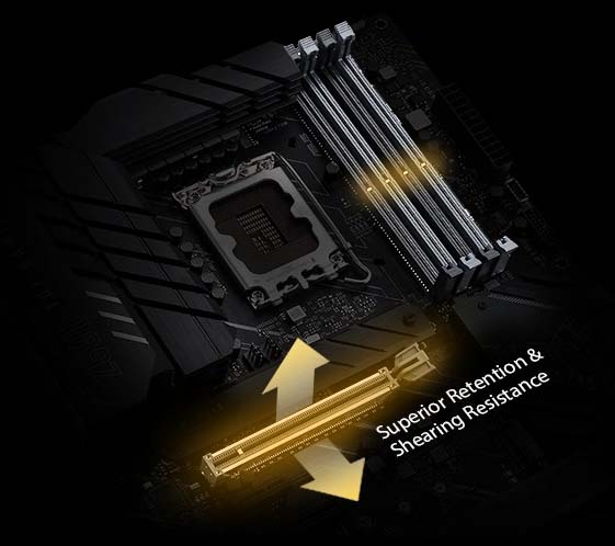 SafeSlot & SafeDIMM PCIe 5.0 nhanh hơn gấp 2 lần so với PCIe 4.0, vì vậy để đảm bảo tốc độ dữ liệu cao nhất khe cắm PCIe thêm SafeSlot với vỏ bọc kim loại gia cố được thêm vào để giữ thẻ được lắp chắc chắn. Trong khi đó, vỏ bọc ASUS SafeDIMM mạnh mẽ hỗ trợ và bảo vệ các mô-đun bộ nhớ trên một số bo mạch chủ ASUS nhất định, cho phép bạn lắp các mô-đun của mình với tốc độ, độ chính xác và sự tự tin. |