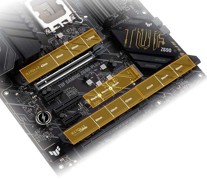 Hỗ trợ M.2 PCIe 4.0 TUF GAMING Z690-PLUS hỗ trợ đến 4 khe cắm M.2 PCIe 4.0 và cung cấp hỗ trợ NVMe SSD RAID để tăng hiệu suất đáng kinh ngạc. Tạo cấu hình RAID với thiết bị lưu trữ PCIe để tận hưởng tốc độ truyền dữ liệu nhanh nhất. |