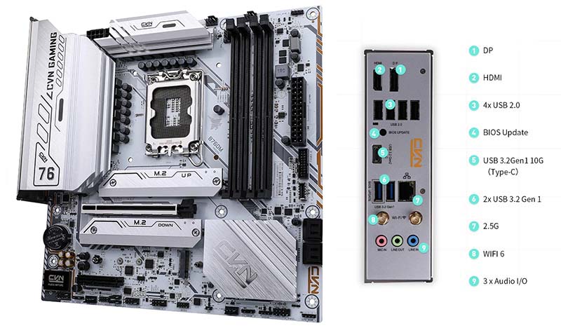Cổng kết nối Mainboard PC Colorful CVN B760M FROZEN WIFI V20 được trang bị đẩy đủ các cổng kết nối để bạn dễ dàng lắp đặt.