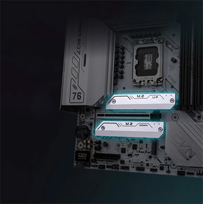 Khe cắm M.2 PCIe Gen 4 Mainboard PC Colorful CVN B760M FROZEN WIFI V20 hỗ trợ khe cắm M.2 PCIe 4.0 và cung cấp hỗ trợ NVMe SSD RAID để tăng hiệu suất đáng kinh ngạc. Tạo cấu hình RAID với thiết bị lưu trữ PCIe để tận hưởng tốc độ truyền dữ liệu nhanh nhất trên nền tảng Intel thế hệ mới. |