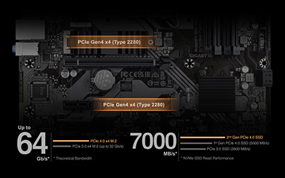 Khe cắm M.2 PCIe Gen 4 B760M DS3H DDR4 hỗ trợ khe cắm M.2 PCIe 4.0 và cung cấp hỗ trợ NVMe SSD RAID để tăng hiệu suất đáng kinh ngạc. Tạo cấu hình RAID với thiết bị lưu trữ PCIe để tận hưởng tốc độ truyền dữ liệu nhanh nhất trên nền tảng Intel thế hệ mới. |