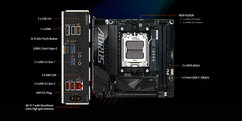Gigabyte B850I AORUS PRO tích hợp công nghệ WiFi 7 mới nhất, mang lại tốc độ không dây nhanh hơn, độ trễ thấp và khả năng kết nối ổn định trong mọi điều kiện. Cổng LAN 2.5GbE cũng được tích hợp để đáp ứng nhu cầu kết nối mạng có dây với tốc độ cao, giúp đảm bảo hiệu suất truyền tải dữ liệu tốt nhất.