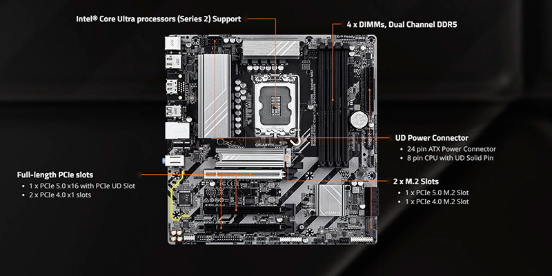 Mainboard Gigabyte B860M DS3H được trang bị socket LGA1851, tương thích với các CPU Intel Core Ultra mới nhất. Sản phẩm tối ưu hóa hiệu suất xử lý của CPU, đảm bảo đáp ứng mượt mà từ các tác vụ hàng ngày đến gaming và đồ họa chuyên sâu. Với khả năng hỗ trợ RAM DDR5, bo mạch chủ mang lại tốc độ truyền tải dữ liệu cực nhanh, hỗ trợ ép xung lên đến 9066 MT/s, phù hợp với nhu cầu cao của các game thủ và nhà sáng tạo nội dung.