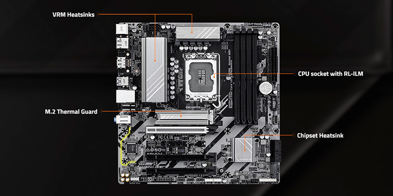 Gigabyte B860M DS3H được trang bị công nghệ tản nhiệt Smart Fan 6 với các cảm biến nhiệt thông minh và quạt điều chỉnh tự động, giúp hệ thống duy trì nhiệt độ ổn định ngay cả khi hoạt động liên tục ở cường độ cao. Điều này mang lại hiệu suất bền bỉ, đồng thời kéo dài tuổi thọ của linh kiện.