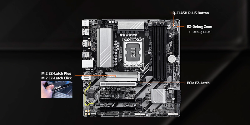 Mainboard này được tích hợp khe PCIe 5.0, cung cấp băng thông lớn để hỗ trợ các thiết bị lưu trữ NVMe tốc độ cao hoặc card đồ họa hiện đại. Tốc độ truyền tải dữ liệu vượt trội giúp rút ngắn thời gian tải ứng dụng và cải thiện đáng kể hiệu suất tổng thể của hệ thống.