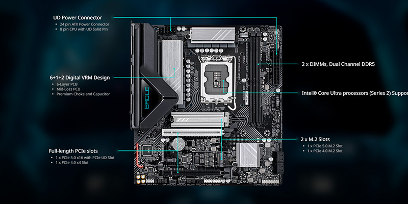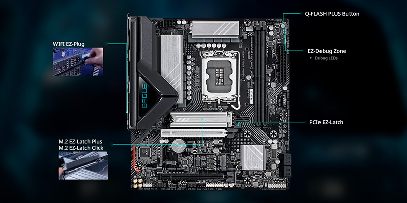 Gigabyte B860M EAGLE WIFI 6 sở hữu thiết kế Micro-ATX nhỏ gọn nhưng vẫn đầy đủ tính năng, phù hợp với nhiều loại thùng máy từ trung cấp đến cao cấp. Với chất liệu linh kiện cao cấp và thiết kế hiện đại, sản phẩm đảm bảo độ bền lâu dài và khả năng hoạt động ổn định trong thời gian dài.