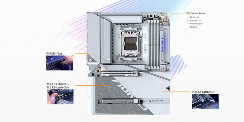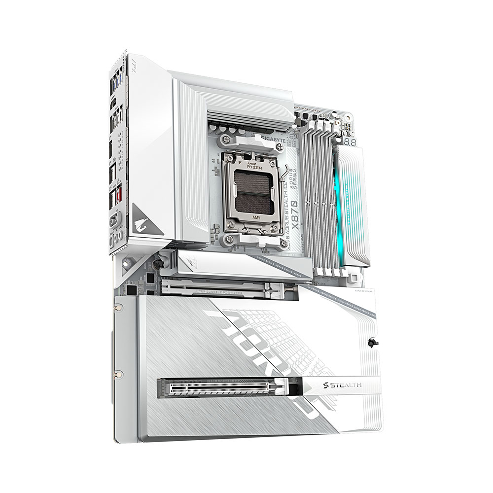 Mainboard PC Gigabyte X870 AORUS STEALTH ICE WIFI7 sở hữu triết lý Stealth độc quyền với toàn bộ cổng kết nối được ẩn để mang lại hệ thống gọn gàng và tinh tế. Bề mặt tản nhiệt bạc ICE kết hợp đường nét cắt CNC sang trọng giúp tăng tính thẩm mỹ và cải thiện khả năng làm mát. Đây là lựa chọn lý tưởng cho người dùng yêu thích build PC tối giản, giúp không gian lắp đặt sạch sẽ, đồng thời tối ưu luồng khí để duy trì sự ổn định cho hệ thống.