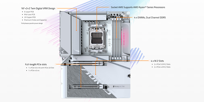 Hiệu năng mạnh mẽ với chipset AMD X870 và hỗ trợ CPU Ryzen mới nhất