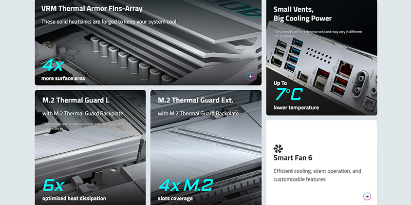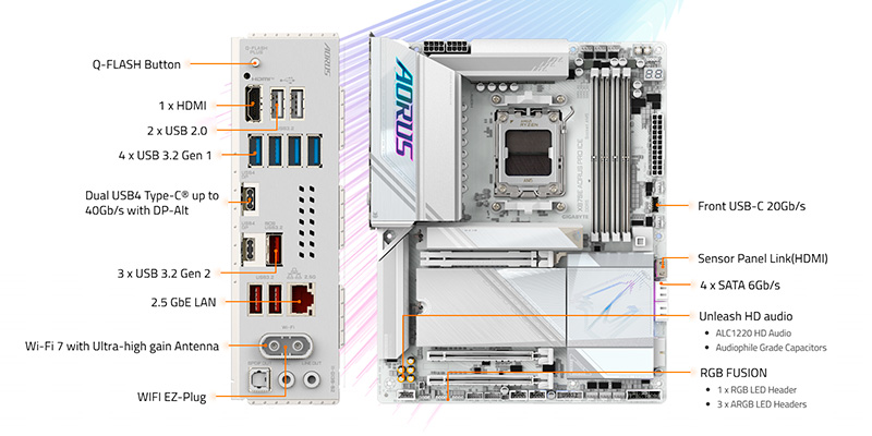 Trang bị chipset AMD X870E, bo mạch chủ này hỗ trợ toàn diện AMD Ryzen 9000, 8000 và 7000 series trên socket AM5, mang lại hiệu năng mạnh mẽ và độ ổn định cao. Với 4 khe DDR5 DIMM hỗ trợ dung lượng lên đến 256GB, tốc độ ép xung 8200+ MHz (OC), người dùng có thể dễ dàng tận dụng tối đa băng thông bộ nhớ cho cả gaming lẫn xử lý dữ liệu nặng. Hỗ trợ AMD EXPO và Intel XMP, sản phẩm đảm bảo trải nghiệm ép xung đơn giản, an toàn nhưng hiệu quả.
