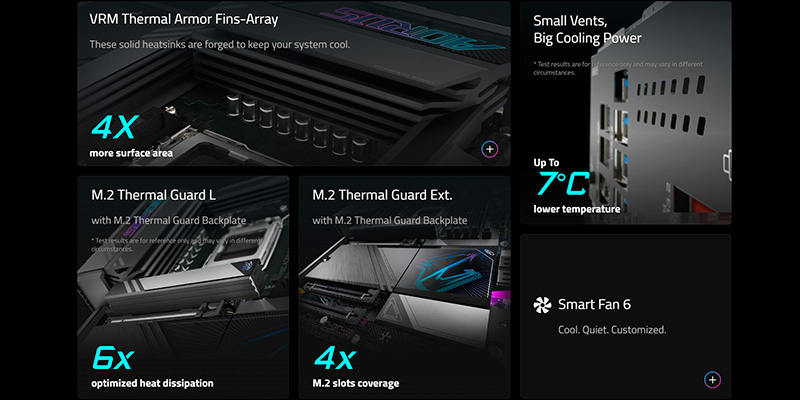 Mainboard PC Gigabyte X870E AORUS PRO WIFI7 DDR5 được trang bị 3 khe M.2 Gen5 (CPU) và 1 khe M.2 Gen4 (Chipset), hỗ trợ RAID 0/1/5/10, cho phép người dùng xây dựng hệ thống lưu trữ NVMe cực nhanh. Khe PCIe 5.0 x16 mang lại băng thông tối đa cho card đồ họa thế hệ mới, đồng thời bo mạch vẫn tích hợp thêm 2 khe PCIe x4 (Gen4 và Gen3) cho khả năng mở rộng linh hoạt. Đây là nền tảng hoàn hảo cho những cấu hình PC cao cấp, gaming 4K/8K và sáng tạo nội dung chuyên nghiệp.