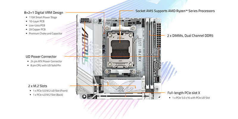 Hiệu năng mạnh mẽ với chipset AMD X870 và CPU Ryzen 9000 series