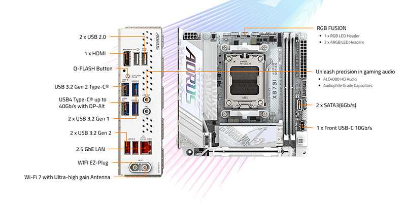 Bo mạch chủ trang bị chipset AMD X870 mới nhất, hỗ trợ AMD Ryzen 9000/8000/7000 series socket AM5, mang lại hiệu năng toàn diện cho cả gaming lẫn công việc chuyên nghiệp. Hỗ trợ DDR5 tốc độ lên đến 8800+ MHz (OC) và dung lượng RAM tối đa 128GB Dual Channel, sản phẩm đảm bảo băng thông cực lớn và hiệu suất đa nhiệm mượt mà. Đây là nền tảng lý tưởng để xây dựng hệ thống PC mini hiệu suất cao, tối ưu từ chơi game eSports đến sáng tạo nội dung.