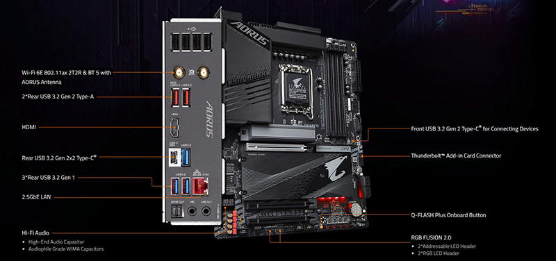 Cổng kết nối Z790 AORUS ELITE AX DDR4 được trang bị đẩy đủ các cổng kết nối để bạn dễ dàng lắp đặt.