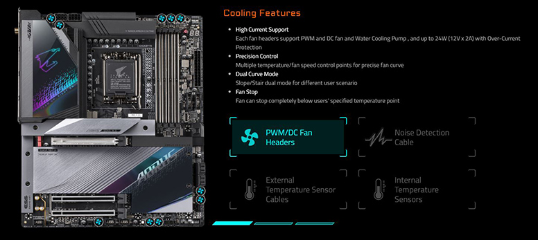 Khả năng tản nhiệt tăng cao Main Z790 AORUS MASTER với diện tích bề mặt lớn hơn so với tản nhiệt truyền thống giúp cải thiện khả năng tản nhiệt từ Smart Fan 6. |