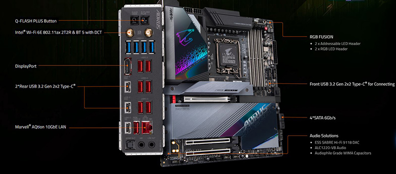 Cổng kết nối Z790 AORUS MASTER được trang bị đẩy đủ các cổng kết nối để bạn dễ dàng lắp đặt.