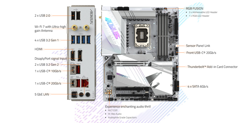 Mainboard PC Gigabyte Z790 AORUS PRO X được trang bị đẩy đủ các cổng kết nối để bạn dễ dàng lắp đặt