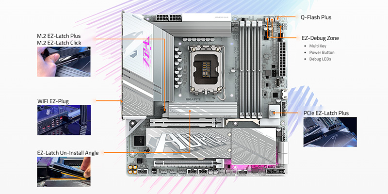 Bo mạch chủ được trang bị 3 khe M.2 PCIe 5.0, hỗ trợ SSD NVMe thế hệ mới, giúp tăng tốc độ đọc/ghi dữ liệu gấp đôi so với PCIe 4.0. Đây là một lợi thế quan trọng cho những ai cần tốc độ truyền tải dữ liệu cao để tối ưu công việc hoặc rút ngắn thời gian load game.