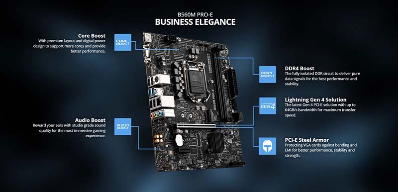 Cổng kết nối MSI B560M PRO-E được trang bị đẩy đủ các cổng kết nối để bạn dễ dàng lắp đặt.