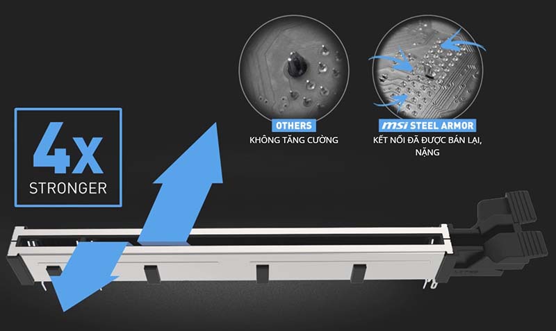 MSI Lightning Gen 4 PCI-E MSI Lightning Gen 4 PCI-E x16 mang đến tốc độ vượt trội lên đến 64GB/s, giúp giảm nhiễu, hỗ trợ băng thông và tốc độ truyền tín hiệu. |