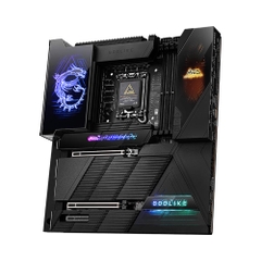 Mainboard PC MSI MEG Z890 GODLIKE sở hữu thiết kế hầm hố với tông màu đen và bạc chủ đạo, cùng hệ thống đèn LED RGB Mystic Light tùy chỉnh, tạo điểm nhấn ấn tượng cho dàn PC của bạn.