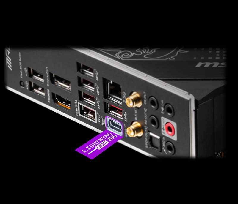 Cổng USB 3.2 Gen 2x2 MSI MPG Z690 EDGE WIFI cung cấp nhiều tuỳ chọn kết nối và tăng tốc các thiết bị USB với tốc độ lên đến 20Gb/s khi sử dụng cổng USB Type-C . |
