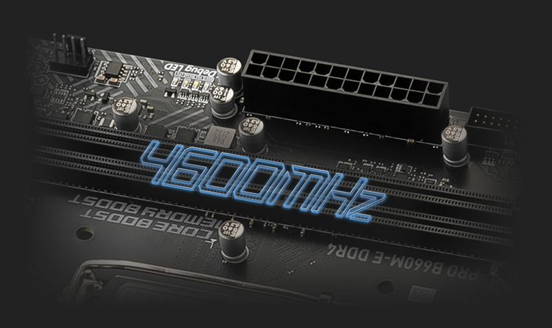 DRAM OverClocking MSI PRO B660M-E DDR4 hỗ trợ ép xung DRAM đến 4600+, cung cấp khả năng truy cập băng thông bộ nhớ và bổ sung các vùng che chắn giúp giảm đáng kể nhiễu xuyên âm |