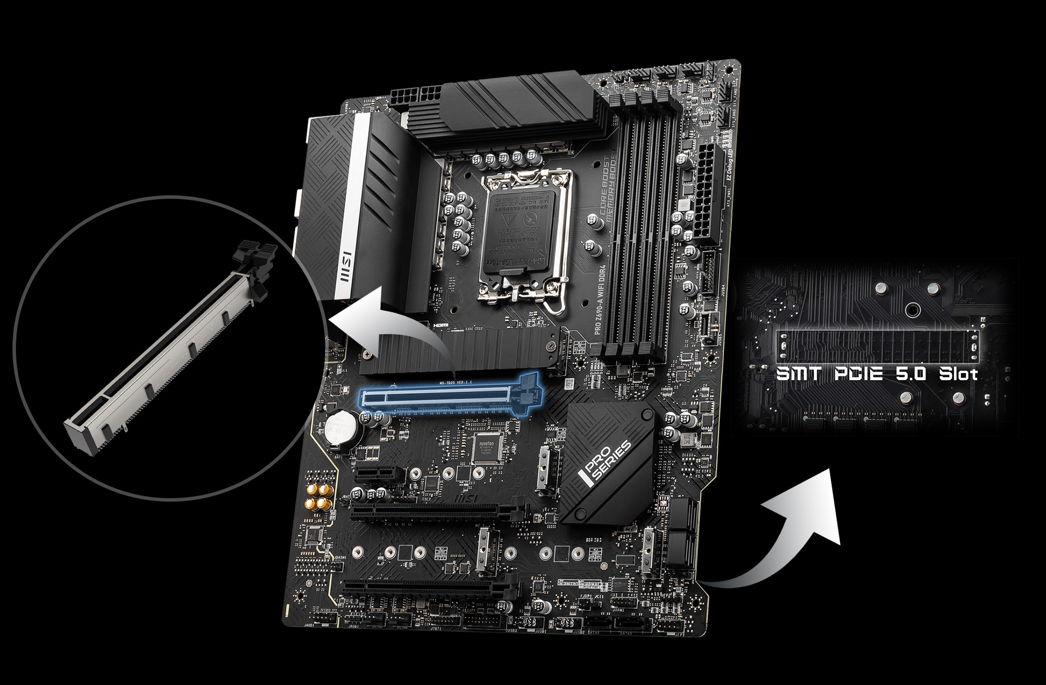 MSI Lightning Gen 5 PCI-E MSI Lightning Gen 5 PCI-E x16 mang đến tốc độ vượt trội lên đến 128GB/s, gấp đôi tốc độ của thế hệ trước, giúp giảm nhiễu, hỗ trợ băng thông và tốc độ truyền tín hiệu PCI-E 5.0. |