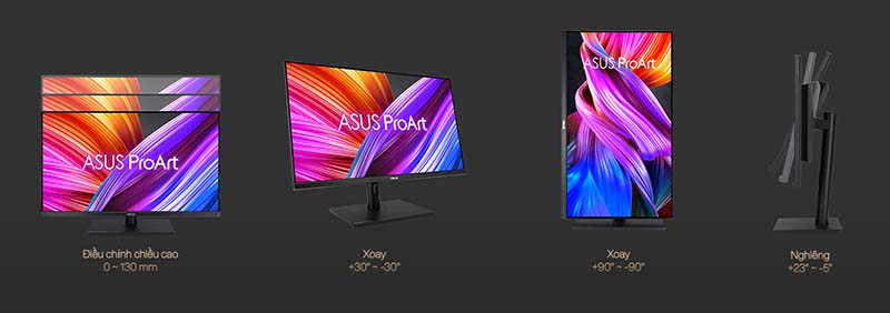 Thiết kế chân đế tối ưu Màn hình đồ họa ProArt PA328QV thiết kế chân đế tiện dụng có thể điều chỉnh độ nghiêng, xoay, quay và chiều cao mang đến trải nghiệm xem và sử dụng thoải mái. Ngoài ra, chân đế hỗ trợ tháo nhanh mà không cần vít giúp dễ dàng gắn màn hình qua giá treo tường chuẩn VESA.