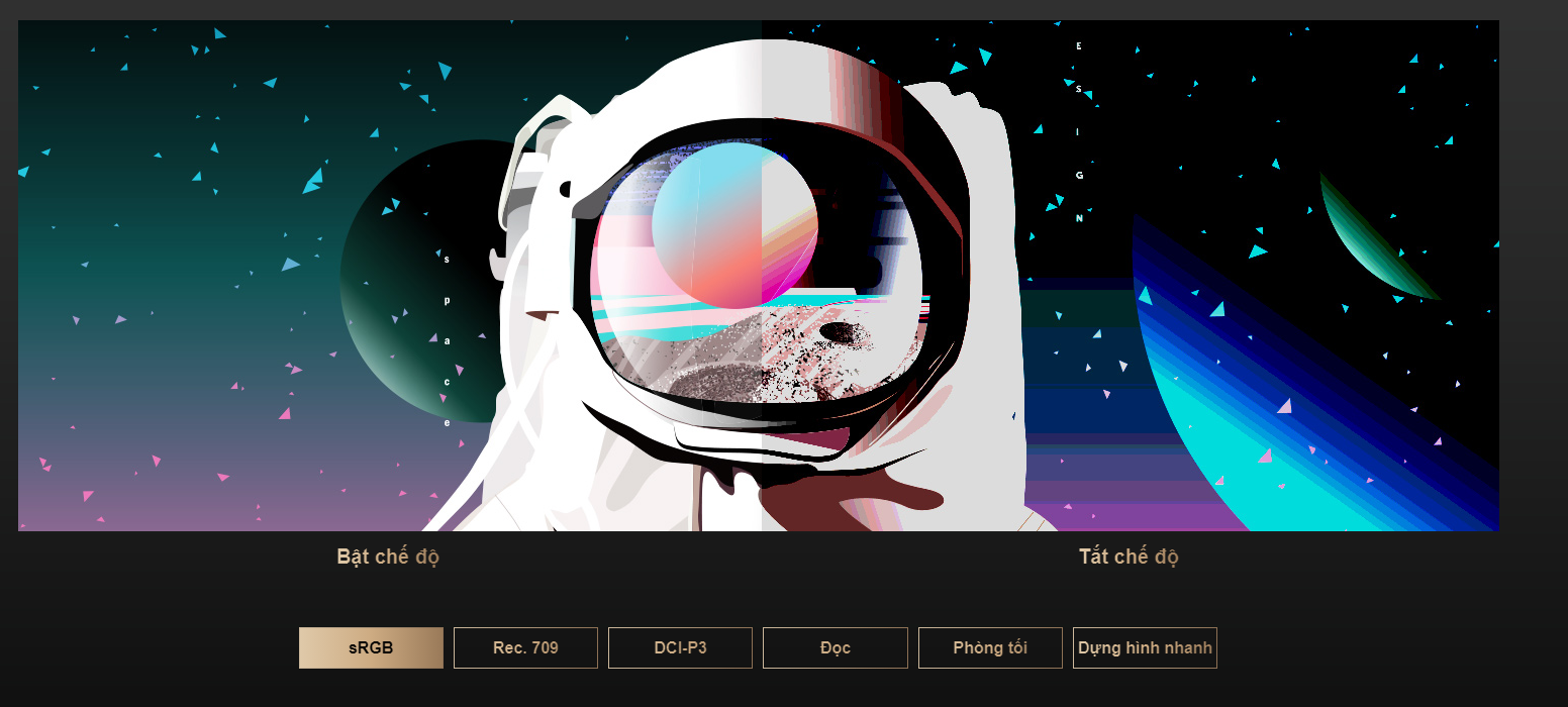 Điều chỉnh gam màu nhanh chóng Tính năng ProArt Preset độc quyền của Màn hình đồ họa ProArt PA328QV cung cấp nhiều chế độ để điều chỉnh gam màu nhanh chóng. Cho dù đang chỉnh sửa màu sắc, chỉnh sửa video hoặc thao tác với ảnh, bạn đều có thể dễ dàng chuyển đổi cho phù hợp với nhu cầu của mình. |