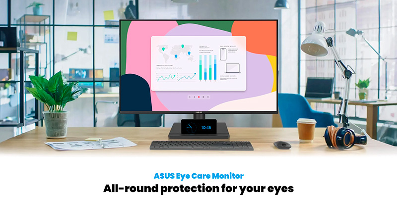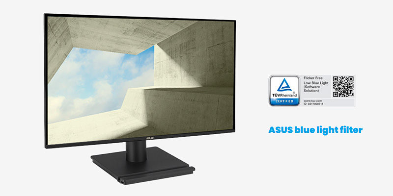 ASUS trang bị cho VA27AQ bộ tính năng Eye Care+, bao gồm Flicker-Free (chống nhấp nháy) và Low Blue Light (giảm ánh sáng xanh), đạt chứng nhận TÜV Rheinland, giúp giảm mỏi mắt và hạn chế tác động tiêu cực khi làm việc nhiều giờ. Ngoài ra, công nghệ ASUS Splendid Video Intelligence và DisplayWidget Center cho phép tinh chỉnh màu sắc, độ sáng, nhiệt độ màu và chế độ hiển thị dễ dàng, tối ưu trải nghiệm cho từng nhu cầu sử dụng.
