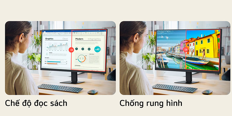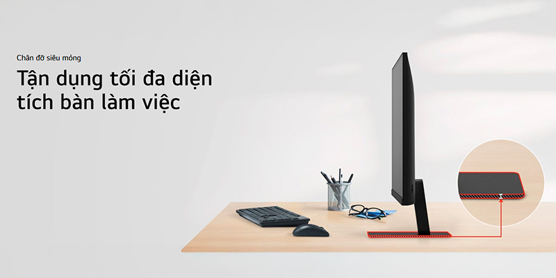 Sức khỏe thị lực của người dùng được LG đặc biệt quan tâm thông qua các tính năng bảo vệ mắt chuyên sâu. Chế độ Flicker Safe (Chống nháy hình) giúp loại bỏ hiện tượng nhấp nháy màn hình không nhìn thấy được nhưng gây hại cho mắt, trong khi Reader Mode (Chế độ đọc sách) giảm thiểu ánh sáng xanh, tạo cảm giác dễ chịu như đang đọc trên giấy thật. Thiết kế 3 cạnh không viền không chỉ mang lại vẻ đẹp sang trọng, hiện đại mà còn giúp tăng cường sự tập trung vào nội dung hiển thị và hỗ trợ thiết lập đa màn hình liền mạch. Chân đế cho phép điều chỉnh độ nghiêng linh hoạt, hoặc bạn có thể tận dụng khả năng treo tường chuẩn VESA 100x100 để tối ưu hóa tư thế ngồi và không gian sử dụng theo ý muốn.