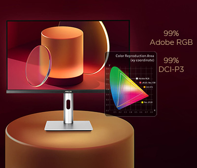 | Sống động từng khung hình Say mê ngắm nhìn các sắc màu có độ thuần khiết, biểu cảm nhờ khả năng tại tạo màu chính xác, trung thực. Màn hình ProArt PA279CRV đạt được ∆E < 2 để tái hiện hình ảnh của bạn một cách chính xác trên màn hình, cho phép bạn có được sự chân thật về tác phẩm khi hoàn thành.. |  |