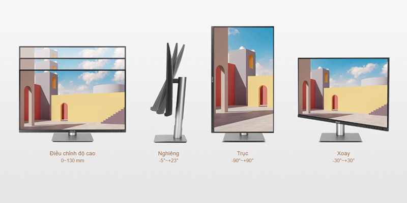 Màn hình 4K ProArt PA329CRV giá đỡ công thái học với các điều chỉnh độ nghiêng, xoay, trục và độ cao để xem thoải mái. Chức năng xoay màn hình 90° theo chiều kim đồng hồ hoặc ngược chiều kim đồng hồ trong chế độ Chân dung rất hữu ích khi làm việc với tài liệu dài, lập trình hoặc duyệt web. Hơn nữa, tính năng tháo nhanh giúp bạn dễ dàng gắn màn hình thông qua giá treo tường VESA tích hợp―không cần vít.