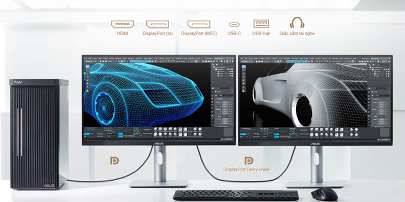 Màn hình 4K ProArt PA329CRV trang bị khả năng kết nối phong phú với các cổng HDMI®, DisplayPort (hỗ trợ daisy-chain), USB Type-A và cổng USB-C downstream bổ sung để tương thích với nhiều thiết bị khác nhau. DisplayPort cho phép người dùng chuỗi daisy nhiều màn hình từ một nguồn video duy nhất, tăng cường năng suất làm việc. Màn hình 4K ProArt PA329CRV cũng bao gồm một cổng để cắm tai nghe.