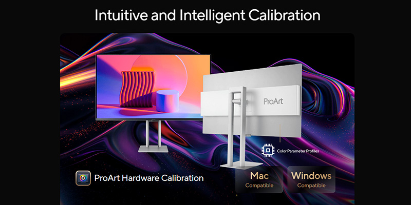 ASUS tích hợp công cụ ProArt Hardware Calibration cho phép người dùng hiệu chỉnh phần cứng để đảm bảo sự nhất quán màu sắc lâu dài. Với ProArt Preset gồm nhiều chế độ màu như sRGB, Adobe RGB, DCI-P3, Rec.709, Dolby Vision..., người dùng dễ dàng chuyển đổi theo nhu cầu thực tế. Đi kèm báo cáo cân chỉnh màu (calibration report) từ nhà máy, đảm bảo sản phẩm luôn đạt hiệu suất tối ưu ngay từ khi mở hộp.