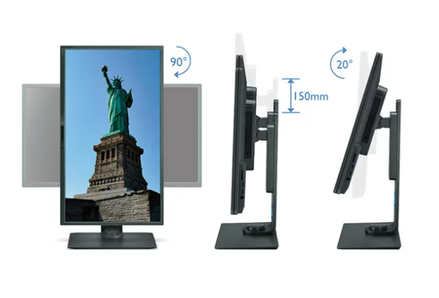 Thiết kế công thái học Phạm vi điều chỉnh đa dạng về độ cao, độ nghiêng, và độ xoay giúp tùy chỉnh nơi làm việc của bạn để hoàn toàn phù hợp với nhu cầu của bạn. Khi được sử dụng ở chế độ màn hình dọc. |