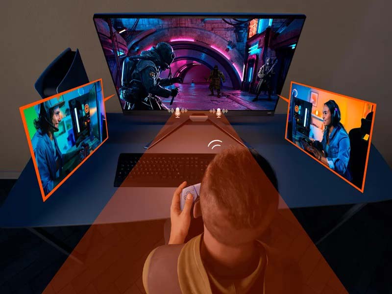 Micrô AI khử tiếng ồn Điều chỉnh âm thanh phù hợp với từng hoàn cảnh. Bật "chế độ Riêng tư" để âm thanh được định hướng và lọc tiếng ồn. "Chế độ đa hướng" thu nhận âm thanh xung quanh giúp tạo cảm giác âm thanh vòm sống động. |