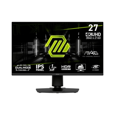 Màn hình 4K MSI MAG 275UPD E14 IPS 27 inch UHD 288Hz Dual Mode là lựa chọn lý tưởng cho game thủ chuyên nghiệp và người dùng đòi hỏi cao về hiển thị. Với tấm nền IPS kích thước 27 inch kết hợp độ phân giải UHD (3840 x 2160), sản phẩm mang lại hình ảnh siêu sắc nét, màu sắc trung thực và góc nhìn rộng, giúp tối ưu trải nghiệm chơi game và làm việc sáng tạo. Đặc biệt, công nghệ Rapid IPS cho thời gian phản hồi chỉ 1ms (GtG) giúp loại bỏ hoàn toàn hiện tượng bóng mờ, mang đến chuyển động mượt mà trong các tựa game tốc độ cao. Tần số quét lên đến 288Hz là điểm nổi bật đáng chú ý, cho phép người chơi phản ứng nhanh hơn, nhìn rõ mọi chuyển động và tạo lợi thế lớn trong các tựa game esports. Ngoài ra, sản phẩm còn tích hợp tính năng Dual Mode độc đáo, cho phép chuyển đổi giữa chế độ 4K@144Hz để làm việc, giải trí chất lượng cao và 1080p@288Hz để chơi game cực mượt, phù hợp với nhu cầu đa nhiệm linh hoạt.