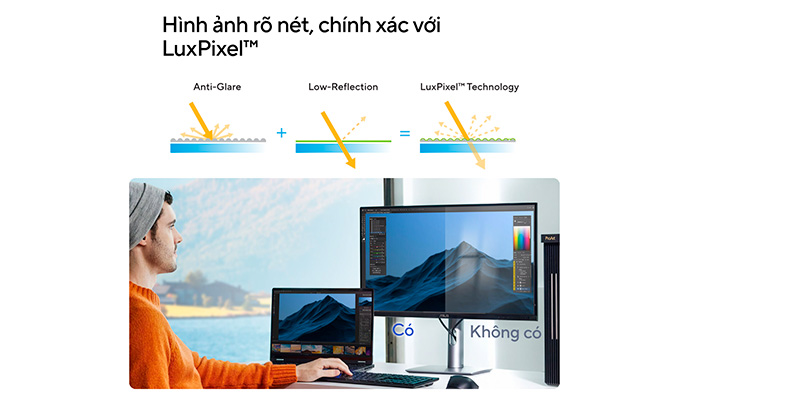 Tích hợp công nghệ khử nhấp nháy (Flicker-Free) và Ánh sáng xanh thấp (Low Blue Light), màn hình giúp giảm căng thẳng thị giác khi sử dụng trong thời gian dài. Đặc biệt, cảm biến ánh sáng môi trường tự động điều chỉnh độ sáng theo môi trường xung quanh, đảm bảo độ hiển thị tối ưu trong mọi điều kiện.