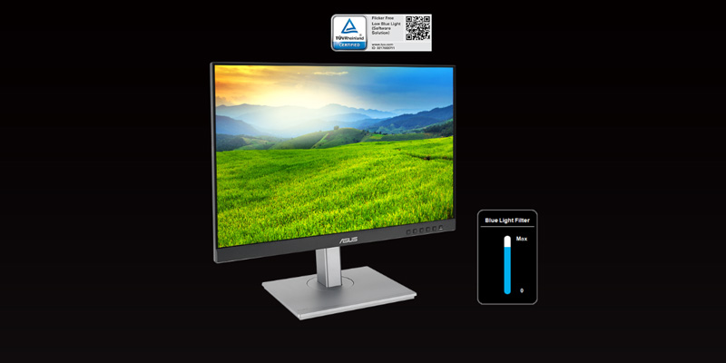 Công nghệ Ánh sáng xanh dương siêu thấp độc quyền của ASUS bảo vệ bạn khỏi bức xạ ánh sáng xanh dương mà có thể gây hại cho thị lực của bạn. Bộ lọc này cung cấp bốn thiết lập bộ lọc đèn xanh dương mà bạn có thể dễ dàng truy cập qua menu trên màn hình bằng cách sử dụng phím nóng.
