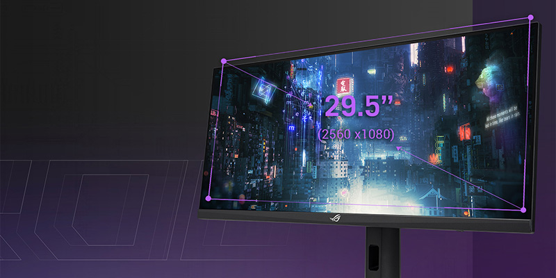 Màn hình ASUS ROG Strix XG309CM có tấm nền siêu rộng 29,5 inch 2560 x 1080 để bạn tận hưởng hình ảnh với độ chi tiết cao hơn khi chiến game hoặc xem phim. Màn hình tỉ lệ 21:9 cực rộng của cung cấp cho bạn nhiều không gian sử dụng, làm việc trên màn hình hơn so với màn hình 16:9 thông thường, vì vậy, vô cùng tiện lợi khi bạn có thể mở nhiều cửa sổ ứng dụng trong lúc làm việc.